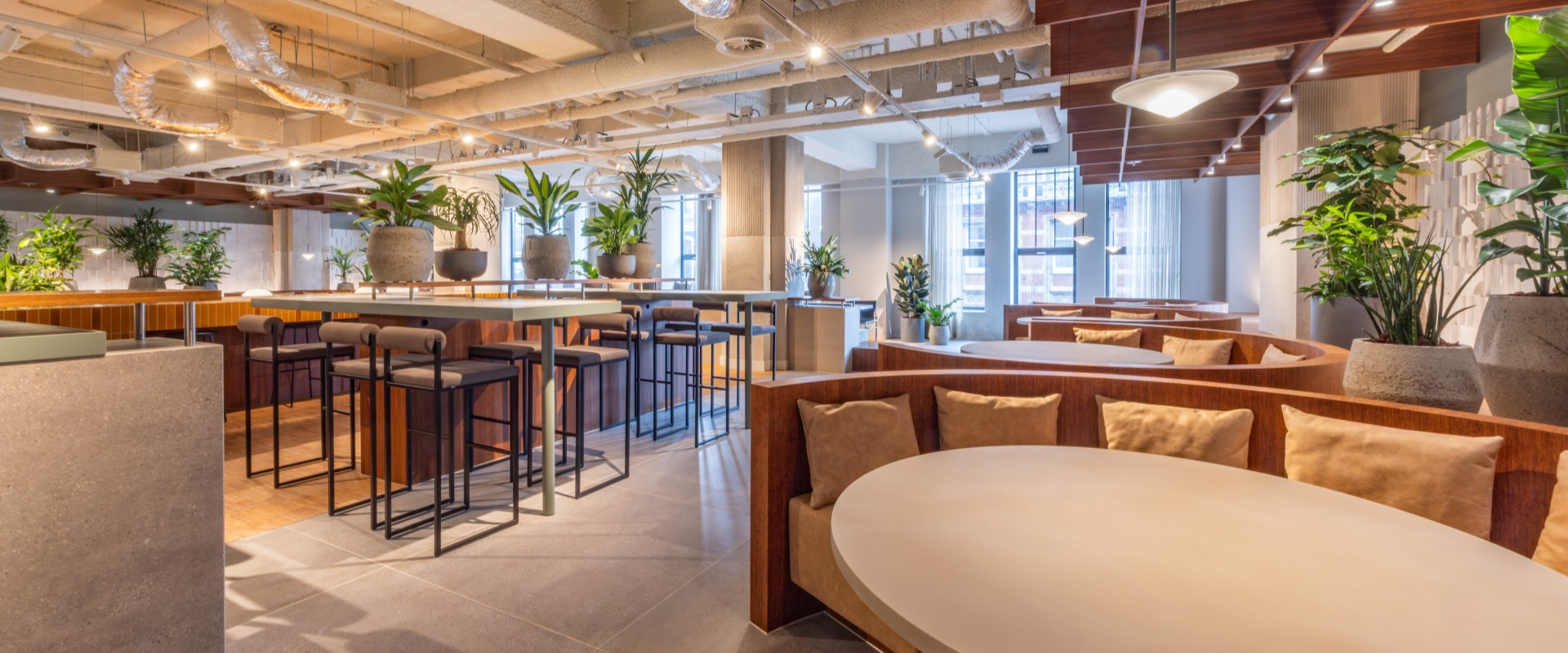 The Bank’s common areas serve as a seamless fusion of Amsterdam’s vibrant city dynamics and the pulse of business. Space designed for comfort and connectivity, offering the perfect balance between productivity and relaxation. Whether you’re gathering for collaboration in the first-floor meeting spaces, or connecting with friends in the coffee bar, each area fosters a sense of community and belonging.