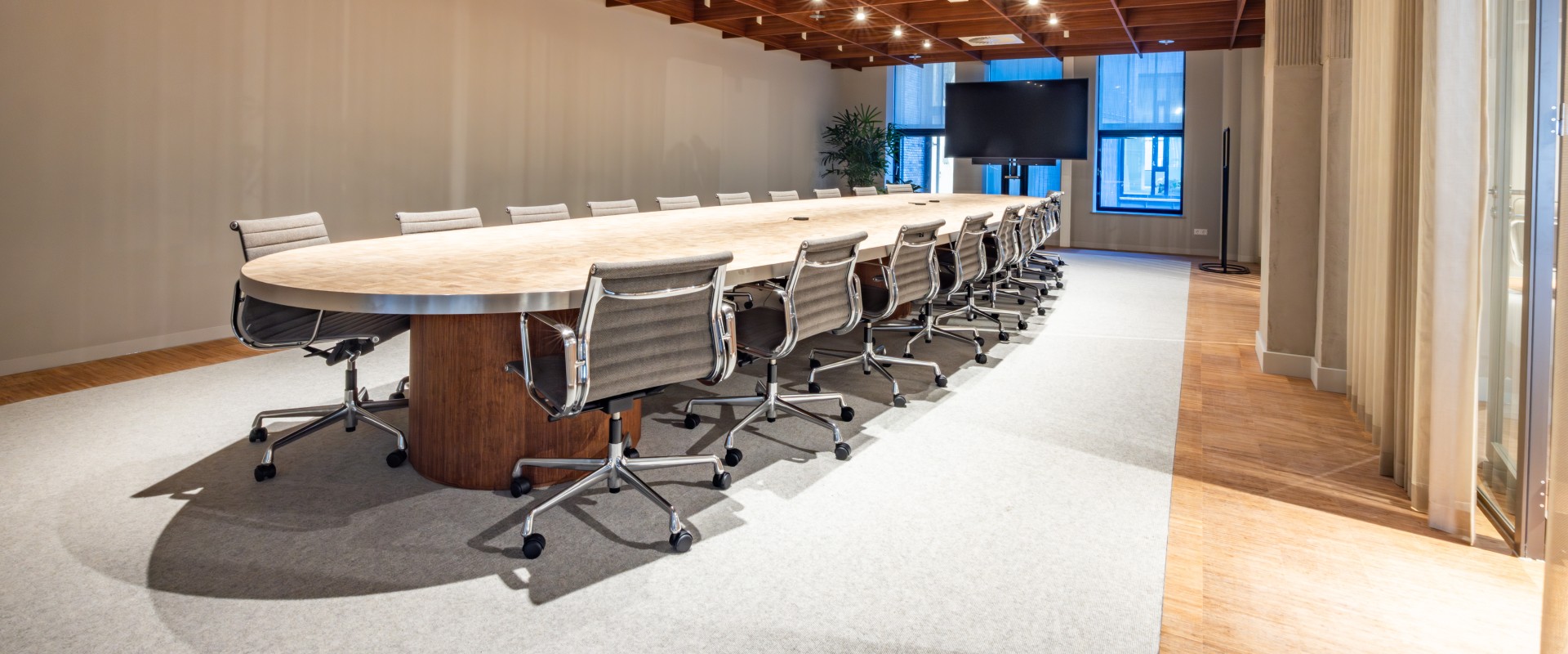 The Bank’s spectacular rooftop terrace doesn’t just offer panoramic views of the city skyline – it’s an experience. The terrace serves as an urban retreat, a stage to disconnect and step into a space where sky meets skyline. Situated on the rooftop the skybox — a glass-encased meeting room — takes center stage. A place where successes are celebrated, ideas flourish, and The Bank's performance truly shines.